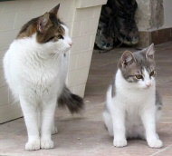 | Fluffy, 17 years old and iron-surfing in Cyprus! | Gremlin - the mad ginger kitten with a split personality! | Jasmine, the grey 'n white kitten with her mum Sascha |