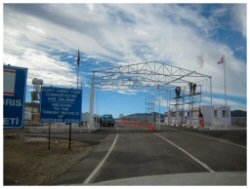 Allow 5-10 minutes (depending on the queue) to fill in a white piece of paper with your name and passport number. This paper is then stamped and NOT your passport and the details punched into a computer to record that you have crossed the border. You must also show your insurance document or you won't be allowed to cross.