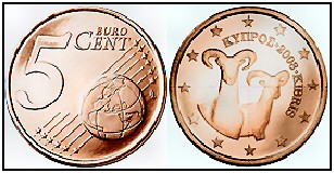 and the small Cyprus money, the 1, 2 and 5 cent coins, carry the famous Cyprus moufflon.