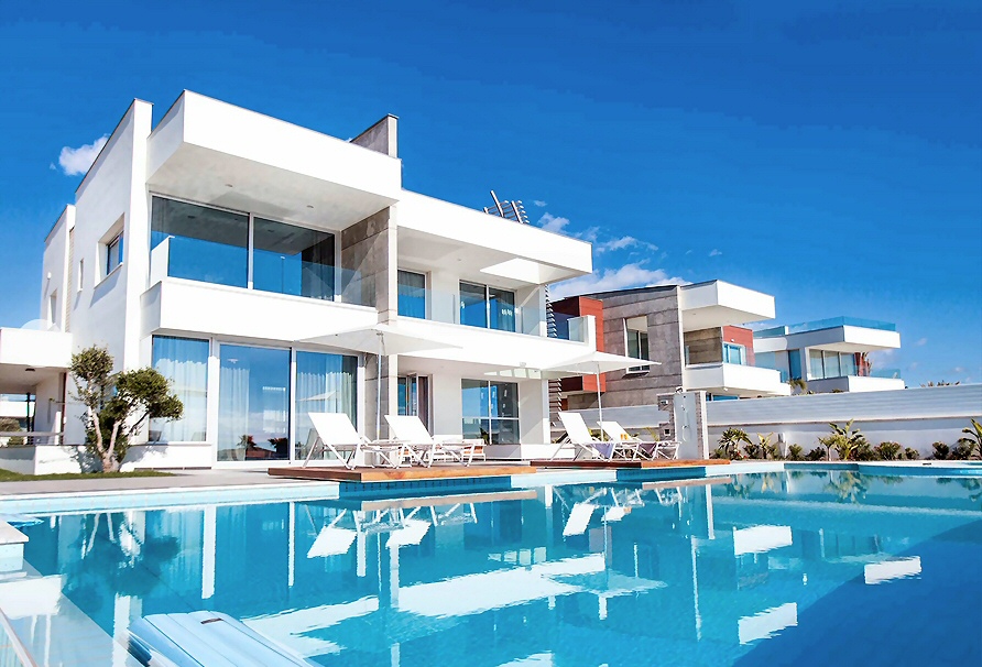 Cyprus offers a vast range of villa options from simple small 2-bedroom properties to pure luxury modern 6-bedroom palaces like the one above.