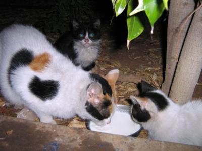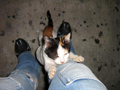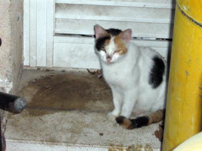 My first street cat in this country. On September, 2005 I was bored. I looked out and I saw a cat. She was thin, dirty and tired. She had two kitties with her. They were far, I hoped they came to me. I called them, and they did.