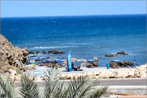On a typically hot day the onshore winds keep you cool, and although a stony beach the sunbeds are always welcome to stretch out on while you think of your next dip in the sea.