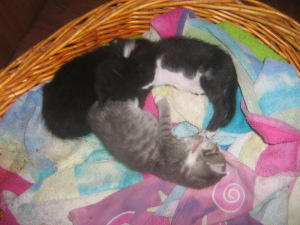 And you believe or not the next evening happened the same things, we found more one cat there. Somebody put in the rubbish 3 beautiful, healthy 3 weeks old cats. I cried with them, I knew they still needed a mother. And I just hoped they could eat earlier then the other kitties.