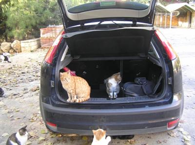 Just left the boot of my car open to get a coat out and in jumped several cats. Agios Neophytos Monastery in Pafos has many many cats all very inquisitive.