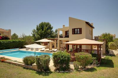 Villa Eleaina is a beautiful private villa on the Aphrodite Hills resort in Kouklia, Paphos. Sleeping up to 8 guests, this impressive property boasts 4 bedrooms, 3 bathrooms, private heated swimming pool and balconies on all rooms with stunning views. Guests can relax in the master bedroom's Jacuzzi, the outdoor BBQ area or large entertainment area with fully fitted kitchen and comfortable lounge.